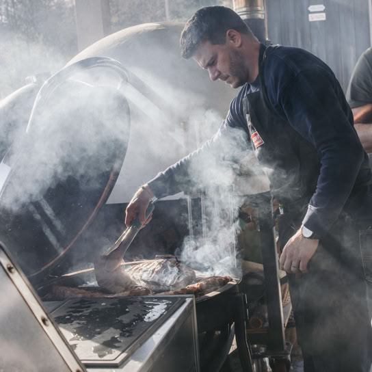 Als interaktives Grillcatering buchbar — unterhaltsam, kulinarisch und für alle BBQ-Fans.